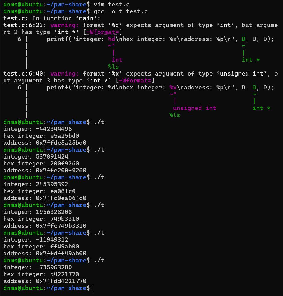 我们可以看到,每一次执行,整数格式和hex格式都在发生无规律的变化,但我们发现: